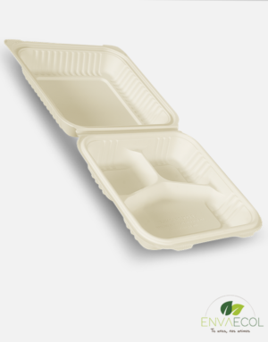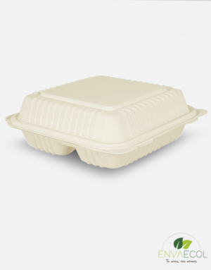 PORTACOMIDAS BIODEGRADABLE 3 DIVISIONES – DE ALMIDÓN DE MAÍZ
